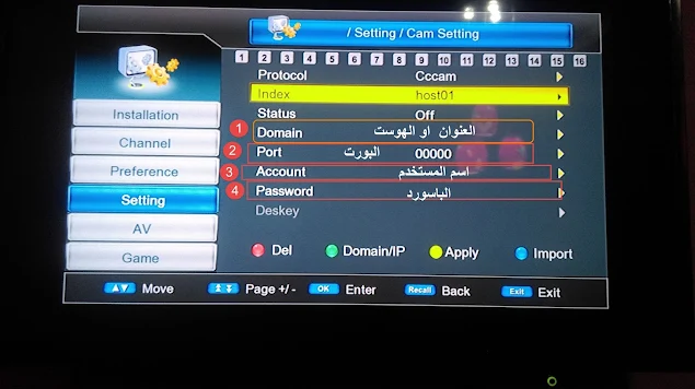مثال علي كيفية اضافة سيرفر cccam الى الرسيفر